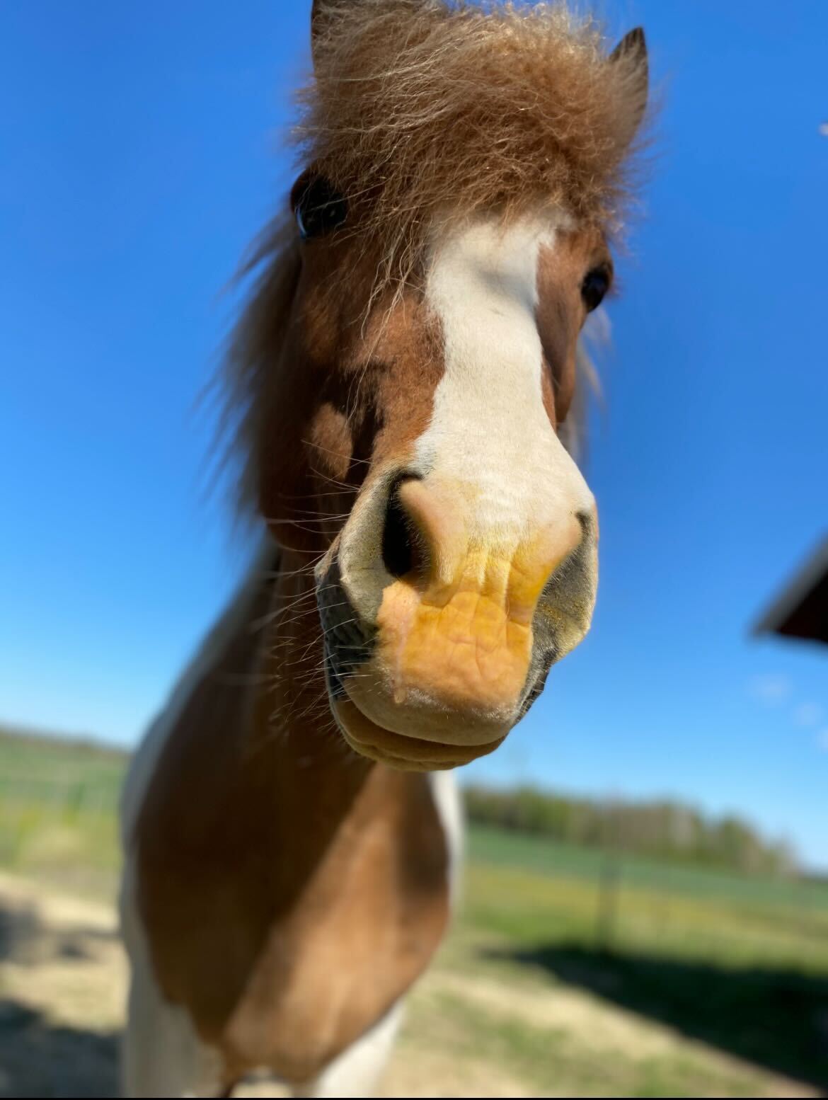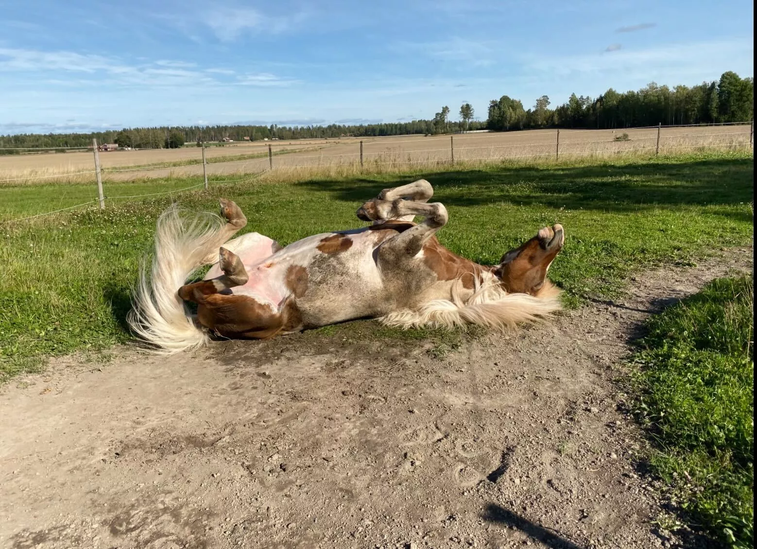 På denna bild ser ni en välförtjänt rullning i leran i hagen. Tur att han är vit, så att han blir smutsig också.